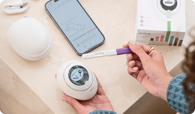 Mira allows patients to easily track their key fertility hormones (LH, E3G, PdG, FSH) through urine from the comfort of home. It offers user-friendly charts, cycle insights, and fertility scores.