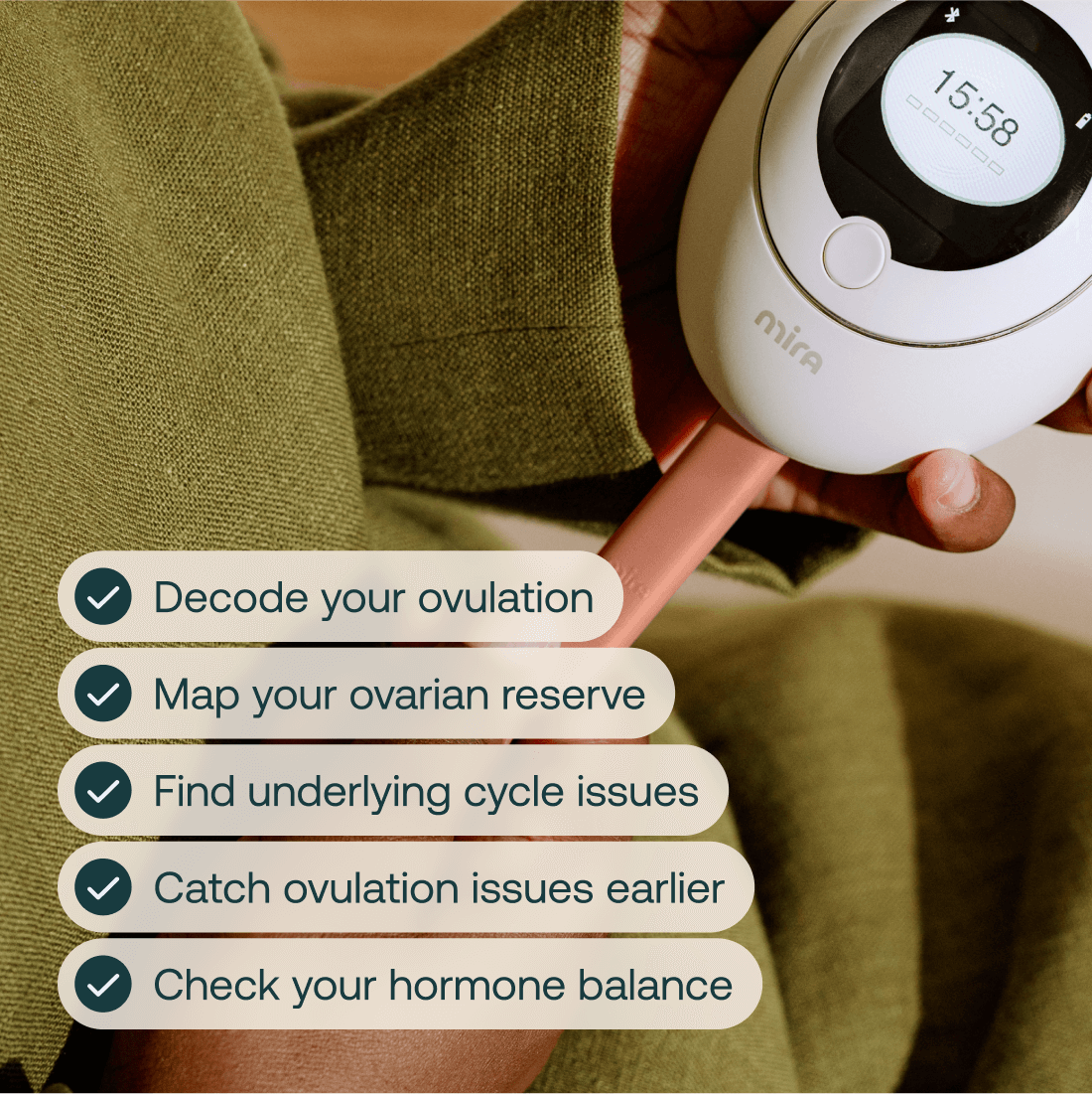 ² Based on survey responses from 572 participants in the MiraExperience study using the Mira Hormone Monitor for cycle tracking and hormone health.