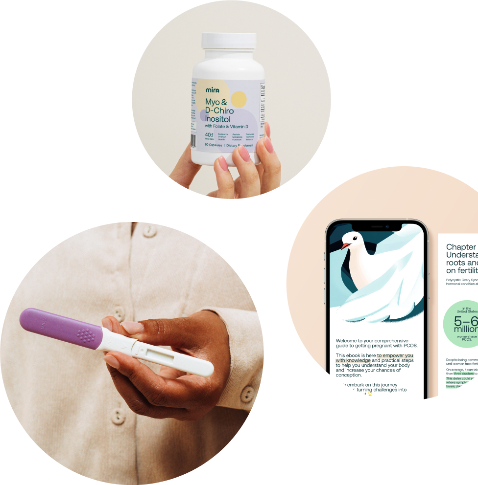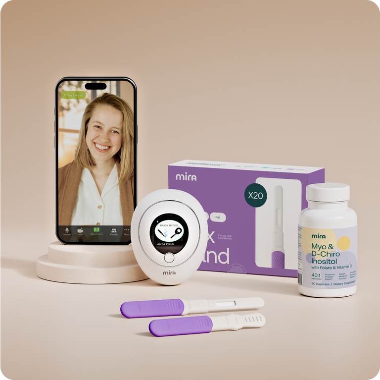 We know that managing PCOS symptoms can be challenging and often comes with many questions. The Mira Monitor and Max Wands help you track your unique hormonal patterns and identify your ovulation, guiding you toward your goals. The PCOS Supplements feature a 40:1 formula designed to alleviate symptoms and improve your well-being. Additionally, this bundle includes a consultation with one of our Hormone Health Clinic practitioners, who will provide personalized guidance and collaborate with you to develop a tailored plan that addresses your symptoms, hormone balance, and fertility goals. Mira users with PCOS have seen a pregnancy rate of 52.7% after three cycles, compared to just 26.7% for those using standard ovulation predictor kits.